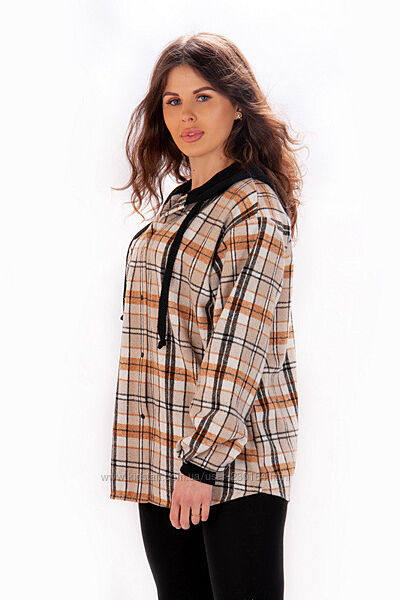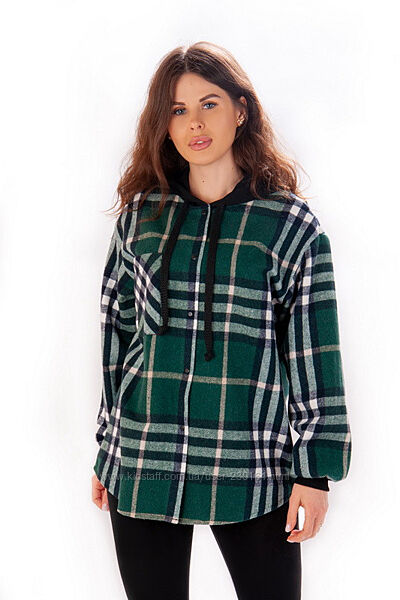 Хіт сезону - сорочка з теплої байки супер якості. Сорочка вільного крою з довгими рукавами на еластичних манжетах, трикотажним капюшоном і стильним декоративним канатом, накладною кишенею на грудях і застібкою на кнопки. Колірна гамма різноманітна на будь-який смак, тканина щільна високої якості (тепла, як тоненьке пальто).Склад: 85% бавовна, 15% поліестер