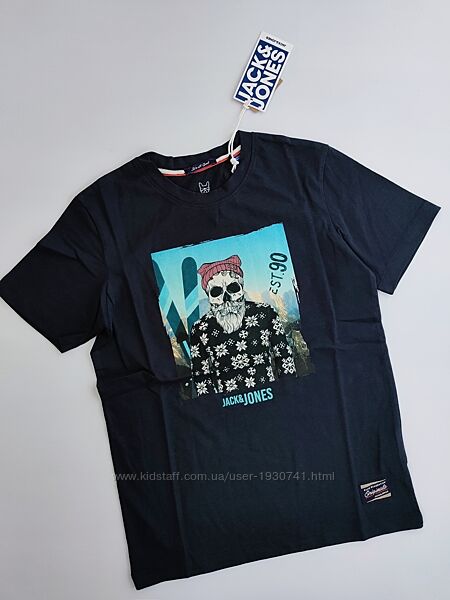 Подробное описание: Мега крутая темно - синяя футболка с принтом Jack & Jones 140 см