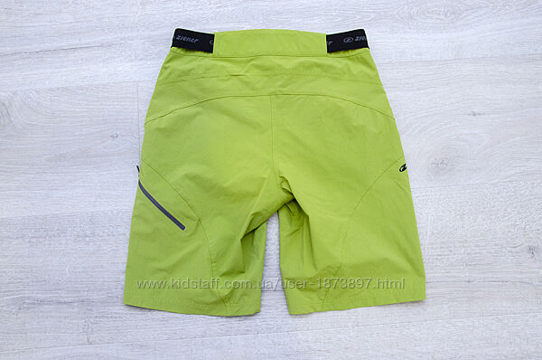 Эластичный в 4 направлениях материал обеспечивает невероятный комфорт при ношении. Пояс можно регулировать с помощью застежки-липучки. В шортах есть один боковой карман на молнии.