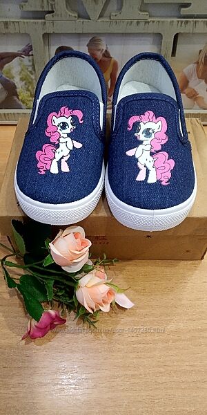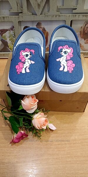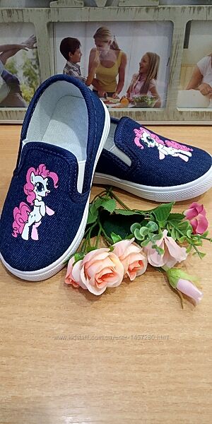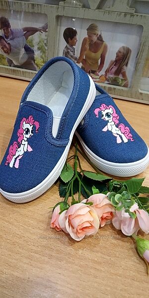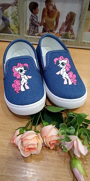 Замечательные тапочки слипоны, с любимыми принтами поняшек.Материал верха - джинсовый текстиль.