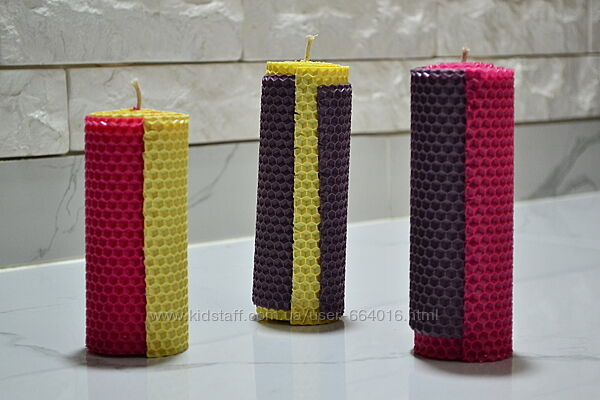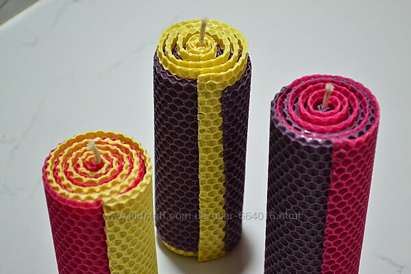 Набор свечей из натуральной, цветной вощины с ароматом меда!Набор состоит из трех цветных свечей: