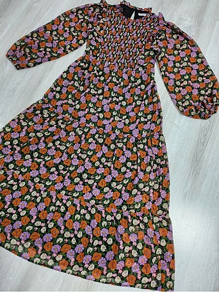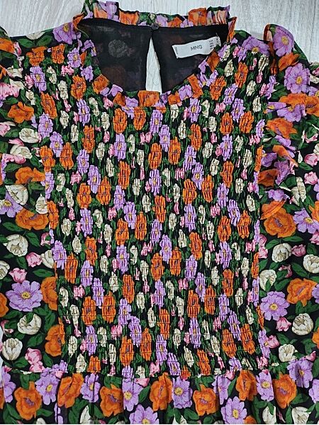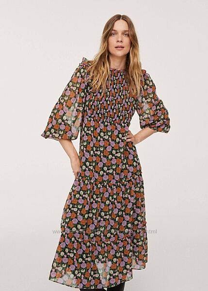 Подробное описание: Цветочное ярусное платье миди с обьемными рукавами Mango