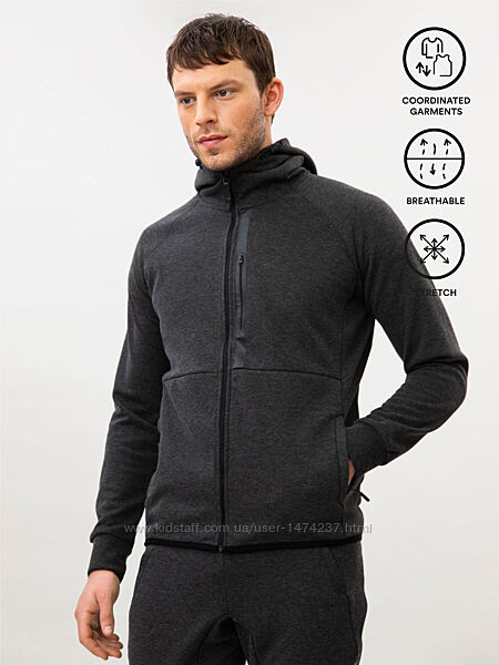Брюки-джоггеры с эластичным поясом и регулируемой кулиской. Боковые карманы и один задний карман на молнии. Очень практична для занятий спортом и повседневной носки. Манжеты имеют ребристую эластичную окантовку для регулировки по щиколотке для улучшения подвижности.