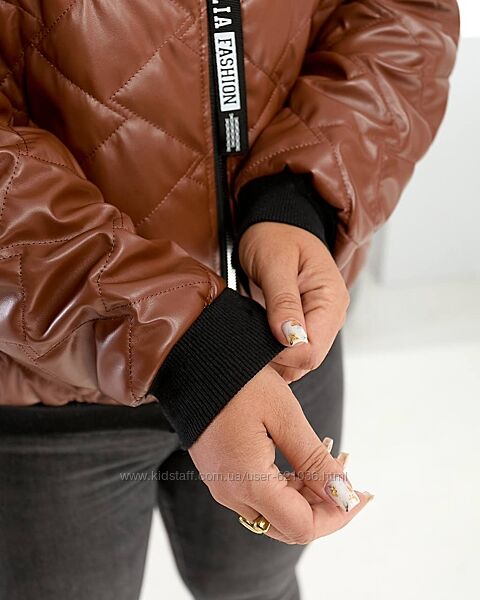 Тканина: еко шкіра + підкладка лаке , стібка на обидві сторони, стьобаний 100 синтепон + бічні кишені