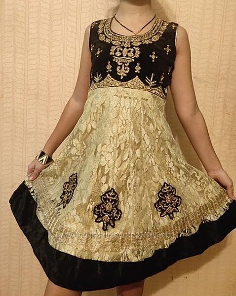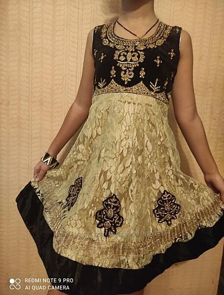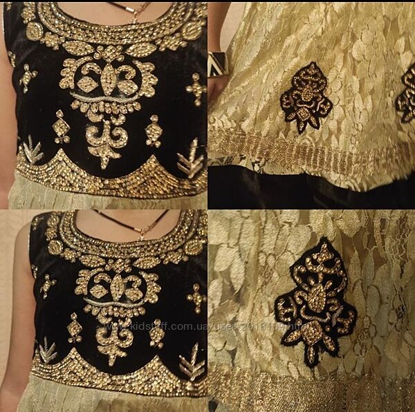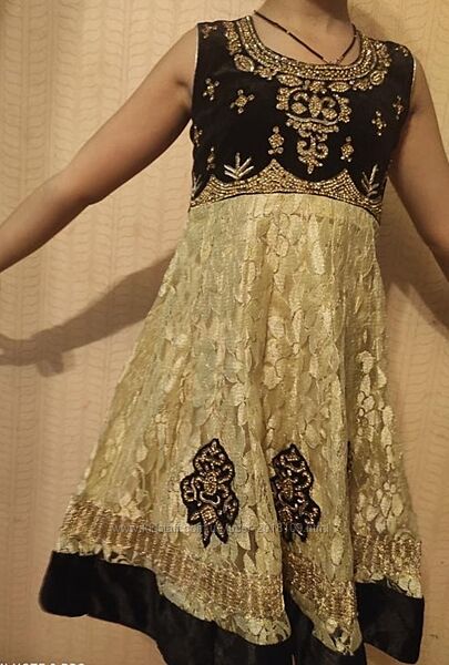 Шикарное крутое платье восточной принцессы, наряд для восточных танцев и не только. Верх бархат с камнями, юбка красивое крутое кружево на подкладке, также вышивка камнями. Очень очень круто эффектно стильно смотрится! Камни почти все, где и нет не заметно абсолютно. Ну супер эффектное платье наряд на утренник праздник Новый Год. Даже жалко расстоваться) на девочку уже мало, видно по фото. На рост 122-128 см, примерно, все детки разные замеры скину. При желании скину Вам видео обзор. Пересылаю. Вопросы в личном сообщении. Смотрите также другие мои объявления. Есть много других вариантов платьев.Доставка: пересылаю Укр или Новой почтой оплата на карту Приватбанка, возврата нет.