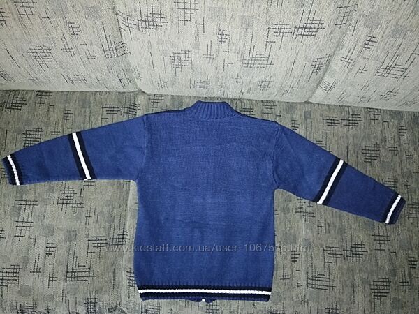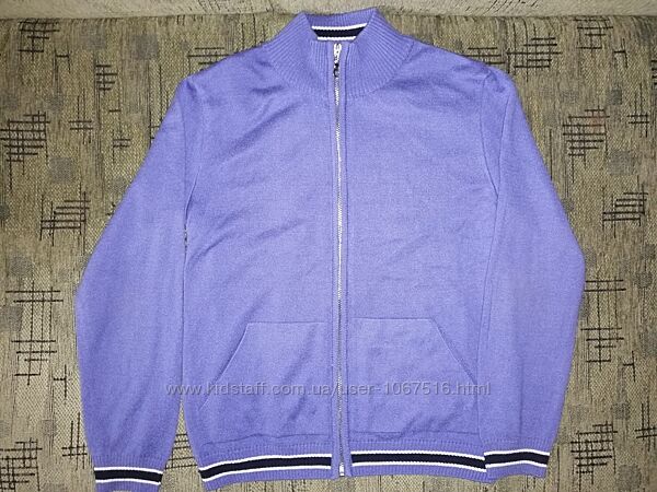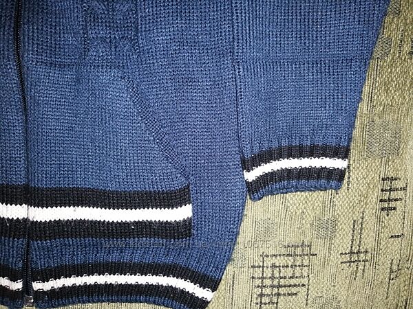 1. Кофта синяя плотной вязки. На замке. 100% акрил. Турция. Есть карманы. Размер 116-128. Замеры: длина - 48 см, ПОГ- 40 см, рукав - 39 см, плечи - 37 см. Без пятен, дыр, есть скатыши. Фото 2-42. Вязаная кофта на молнии в хорошем состоянии. Тонкая вязка. Фирма Go glow (Украина). Цвет голубо-фиолетовый, очень красивый. Есть карманы. Размер 128. Замеры: длина - 46 см, ПОГ- 40 см, рукав - 47см, плечи - 34 см. Состав 50% хлопок, 50% акрил. Фото 5-7