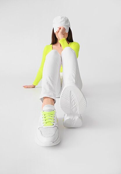 Подробное описание: Кожаные женские кроссовки летние перфорация желтые вставки