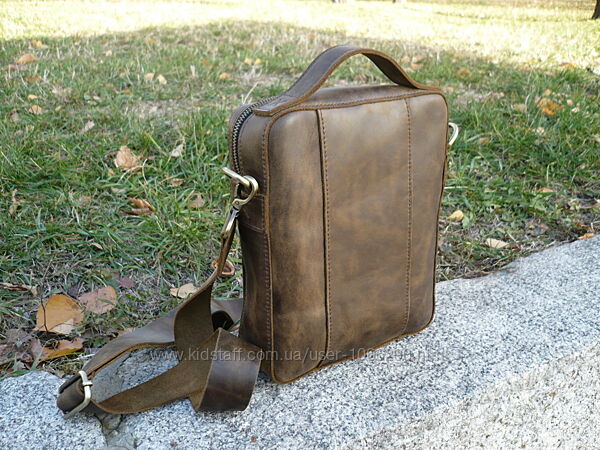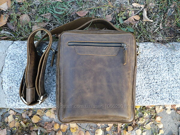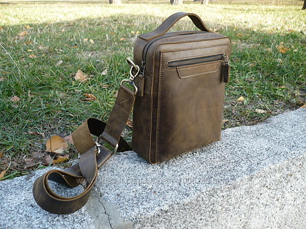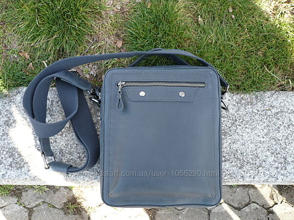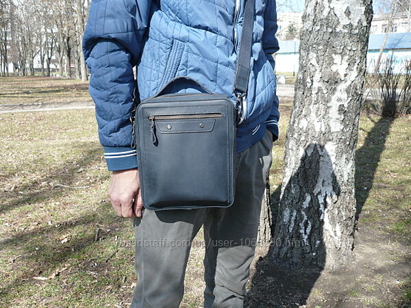 Сумка из кожи КРС «crazy horse» , цвет темно синий и табачный. Размер 210*260*60 мм. В основном отделении есть внутренний карман. Внешний карман, размер 180*210* мм. Молнии и собачки YKK (Япония). Сумка прошита вощеной нитью galaces 0,5 мм. Порезы обработаны средством tokonole (Япония). Кожаный ремень, ширина 30 мм. Ручная работа. Ценность: 2300 грн.
