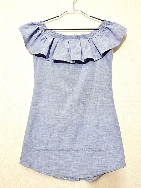 Красивое стильное летнее платье голубое, открытые плечи, спереди застёжка пуговицы, короткое, женское.В идеальном состоянии.