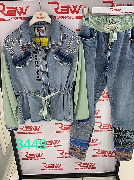 Джинсовый костюм Рав Raw Расцветки размеры СЗамеры С курточка ширина под руками 49 см длина 59 см джинсы ширина в бедрах 50 см длина 102 см шаг 76 см