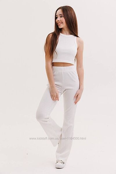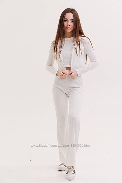 Костюм трійка з кроп-топом на блискавці для дівчинки. Тканина рубчик. Штани кльош.Заміри: