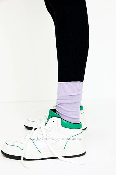 Высокие кожаные кроссовки с деталями контрастного цвета, перфорацией на носу и шнуровкой.