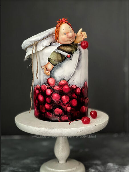 Тортик- «Птичье молоко/вишня»Ганаш под мастикуОбтяжка тортика мастикойРоспись тортика лепка головы КарлсонаТортик в виде банки с вареньем