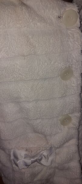Шубка очень красивая, пошита идеально, с карманчиками и капюшоном,на 3х пуговках. Качественная подклад. Длина перед-40см Длина по спинке -43см Длина рукава от шва - 43см Ширина по плечам - 32см Пог- 37см
