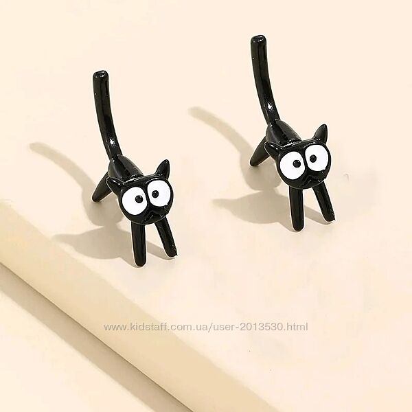 Подробное описание: Сережки-котики чорні, сережки, прикраси, срібло, подарунок, сережки