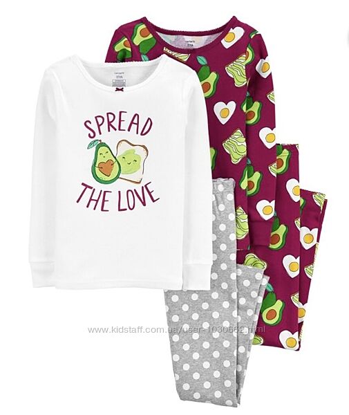 Комплект из двух пижам Авокадо Carter’s Америка для девочки. Состав 100% хлопок .Размер 5. На рост примерно 104-110-116 см. Размерная сетка продавца представлена на фото. При необходимости сделаю замеры нужного размера.