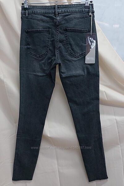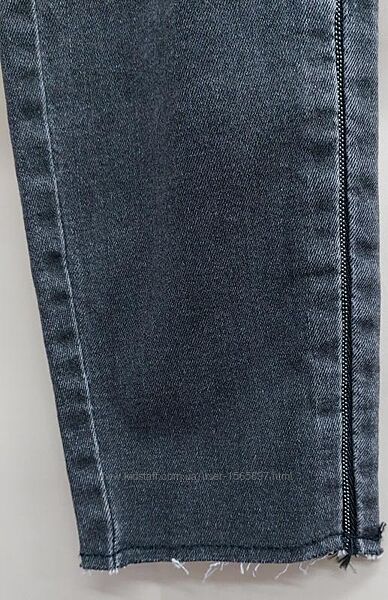 Серые с потёртостями джинсы, в боковых швах тонкий лампас, низ обрезан.Германия.Очень классно сидят, отлично носятся.