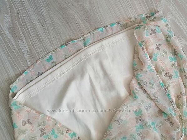 Юбка не ношенная, новая с биркой, британская фирма pepper tree, винтаж, есть любители, ценится на ибей, можно продать при желании там, кто этим занимается. Воздушный шёлковый полиэстр на чехле. Пояс на резинке. Резинка в отличном новом состоянии, эластичная. Есть маленькие пятнышки на складках пояса. Большой атласный бант. Начало 90х. Пот 32,5, тянется до 42. Ширина пояса 5 см.Другие объявления продавца