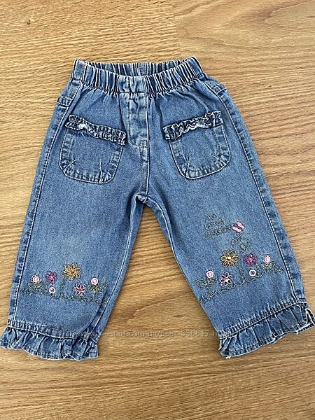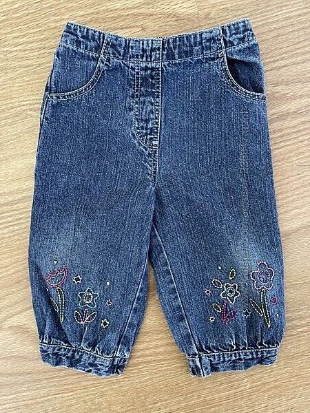 Джинси блакитні квіти 6-9 міс 68-74 - 100ОТ 18-25 резинка