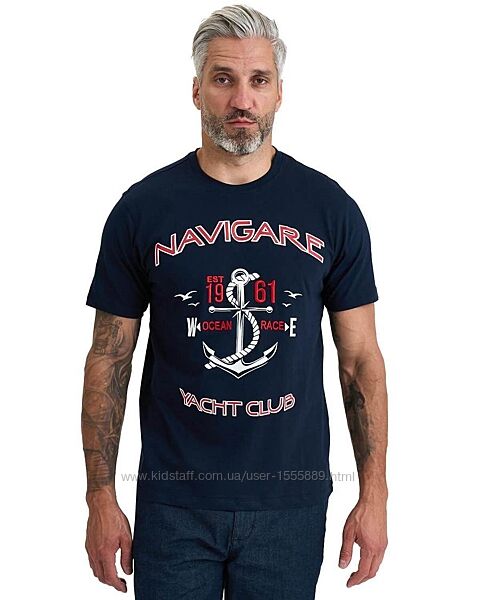 Спинка однотонна, а передня частина декорована контрастним принтом із фірмовою ілюстрацією та написом "Navigare".