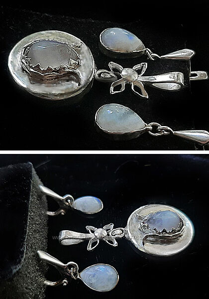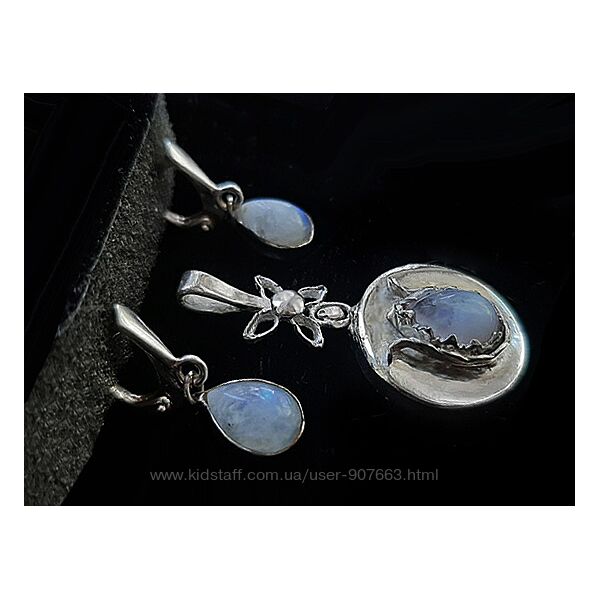 Подробное описание: Сережки та кулон з адуляром місячний камінь авторська ручна робота.