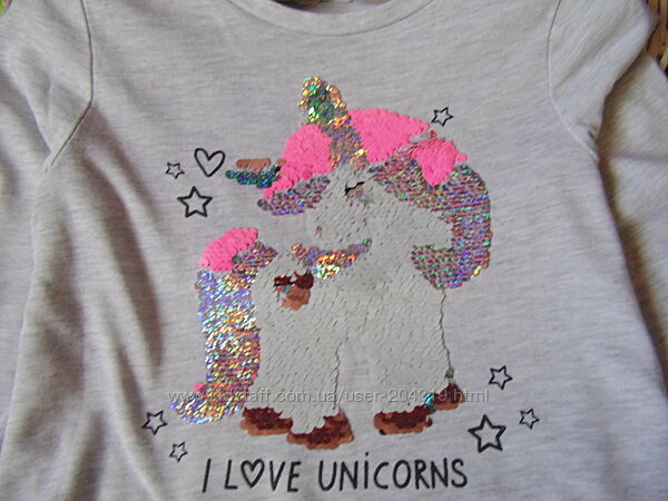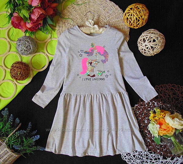 Нежное трикотажное платье с единорогом H&M на 6-8 лет,рост 116-128см