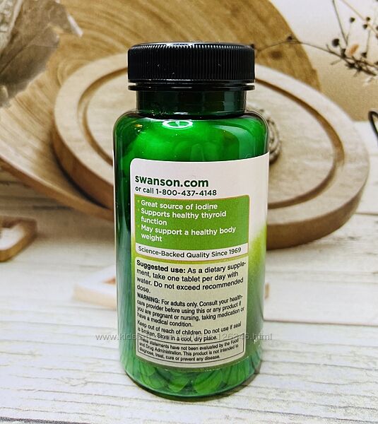 Подробное описание: США Йод з бурих водоростей Swanson Kelp Thyroid Support