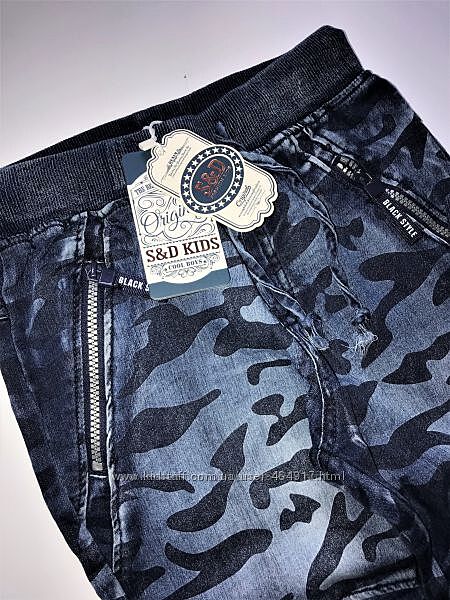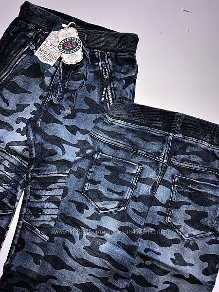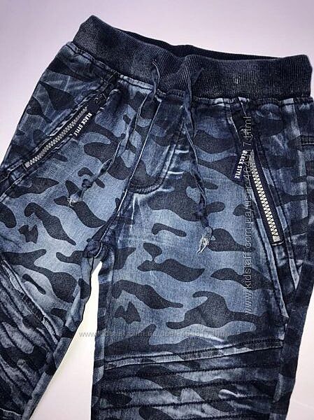 Стильні джинсові джоггери під камуфляж для підлітківПояс на гумці, спереду дві кишені на блискавці, ззаду 2 накладні кишені.