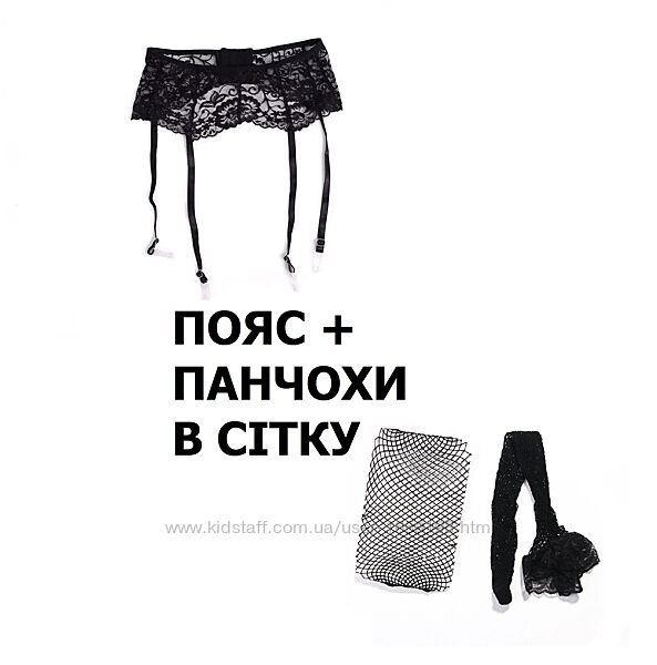 Комплект панчохи в сіточку та пояс для панчіх. Пояс и чулки в сетку. Гарте
