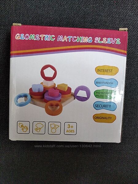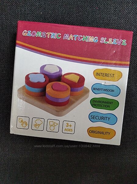 Пирамидка геометрическая 3+Собирая и разбирая пирамидку- ребенок изучает цвет, форму, название.