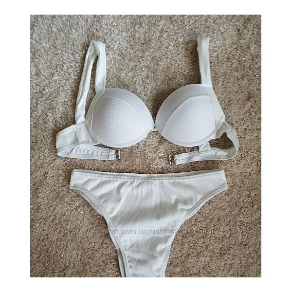 Подробное описание: Раздельный купальник в рубчик твердая чашка высокие плавки