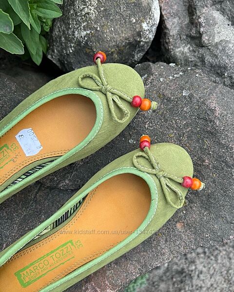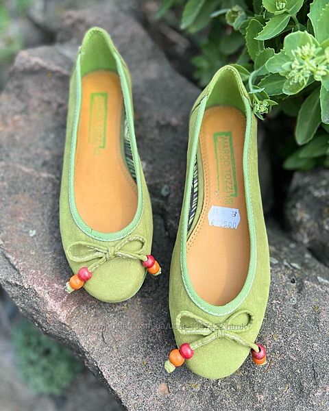 Милі текстильні балетки marco tozzi /німеччина/ фісташкового відтінка