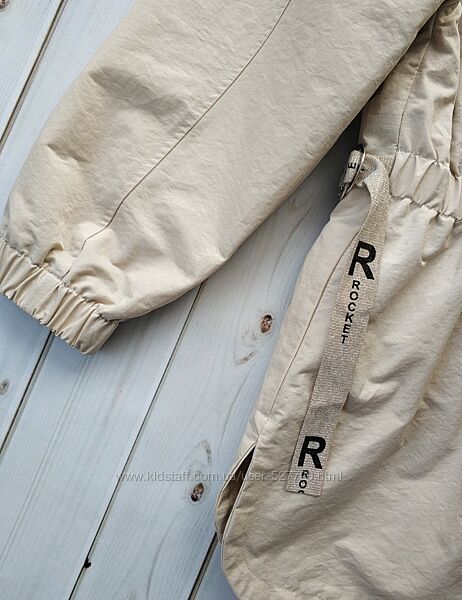 Оригинальная ветровка для девочек выполнена из качественной матовой слегка жатой плащевки. Изделие застегивается на молнию, а сверху планкой на кнопках. Область талии присборено резинкой, имеются открытые накладные карманы, низ по бокам закруглен, в области груди карманы не активные - имитация.Капюшон: съемный