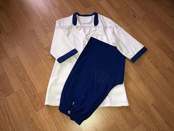 Мед костюм размер 48-50 , цвет белый с электрик, очень красивый цвет, китель приталенный, рукав 3/4, хорошо садится по фигурке и стройнит - состояние идеал, одевала несколько раз. Ткань 100 % элит котон, плотная. Возможна пересылка в другой город.Китель: