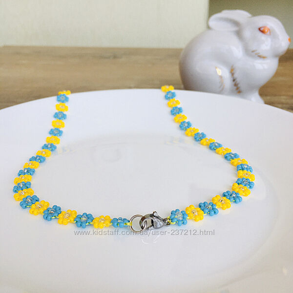 Яркий бисерный чокер с цветочным узором в цветах флага Украины. Изготовлен из чешского бисера с фурнитурой из нержавеющей стали.Длина чокера - 47 см