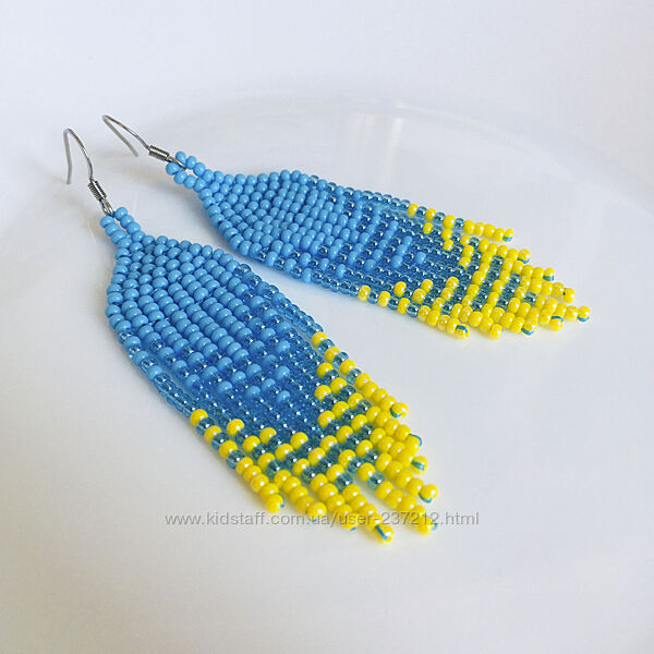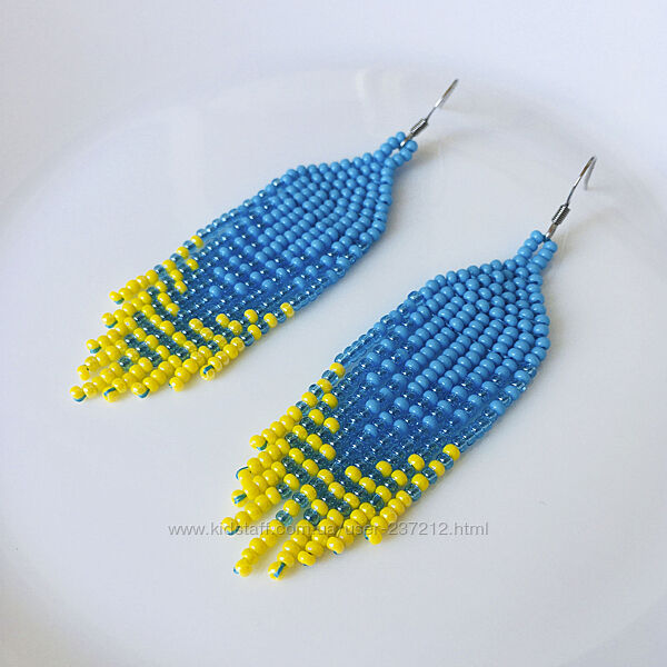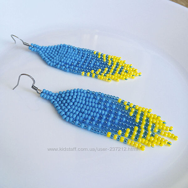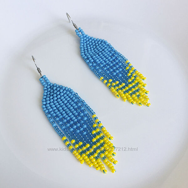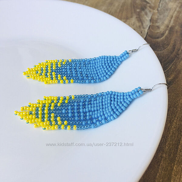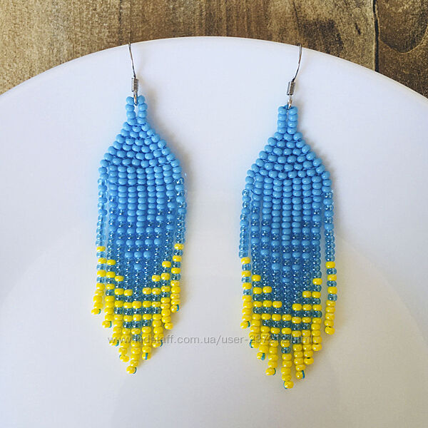 Длинные бисерные серьги с градиентом в цветах флага Украины. Эти серьги из бисера станут отличным дополнением вашей коллекцииукрашений и уникальным патриотическим подарком. Также вы можете