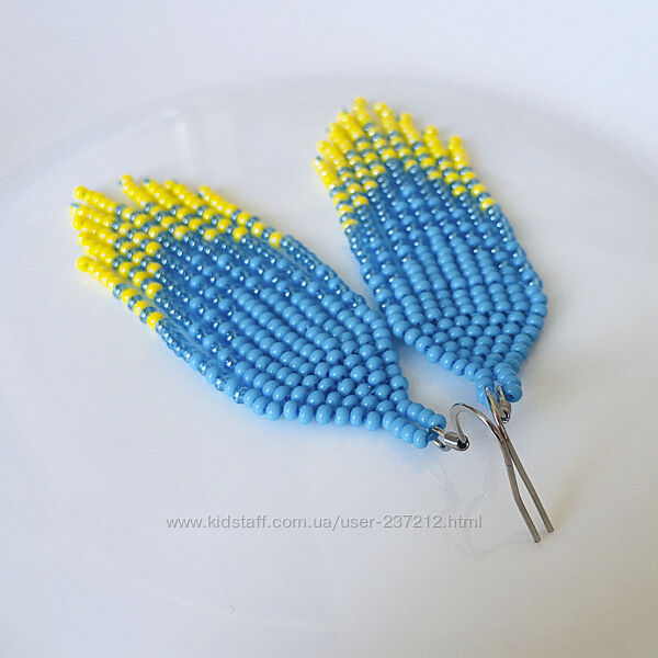 Подробное описание: Патриотические серьги бахрома из бисера, серьги флаг Украины