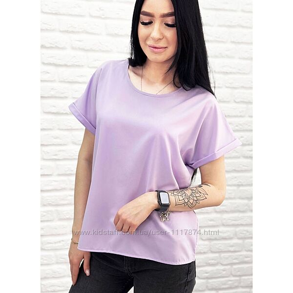 Жіноча блузка-футболка шиється з легкої і приємної до тіла тканини – софт. Матеріал неймовірно легкий, відмінно пропускає повітря і вологу, невибагливий у догляді і досить зносостійкий.