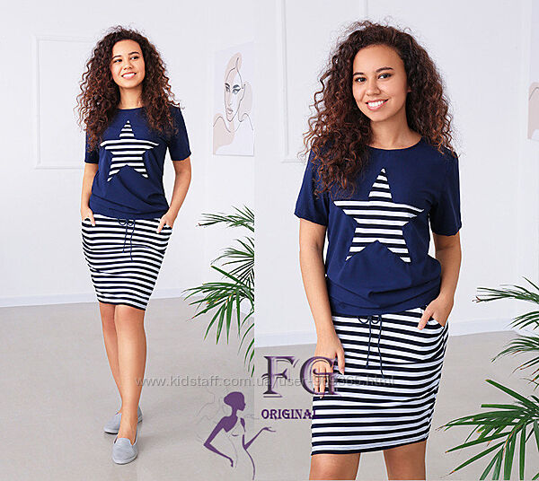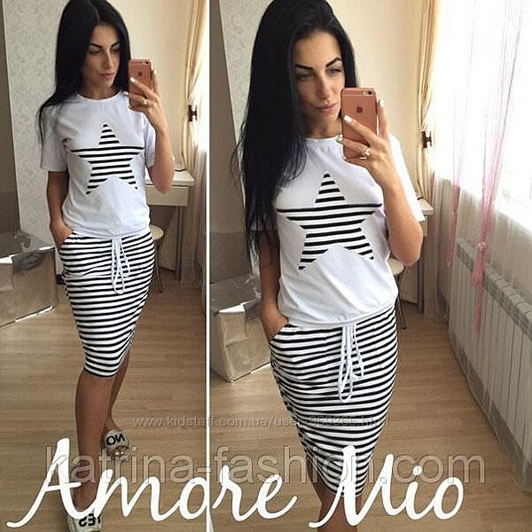 Представляем общему вниманию дизайнерский трикотажный женский костюм, состоящий из юбки-карандаш и футболки.