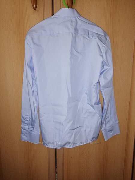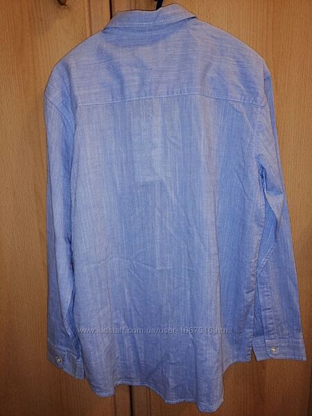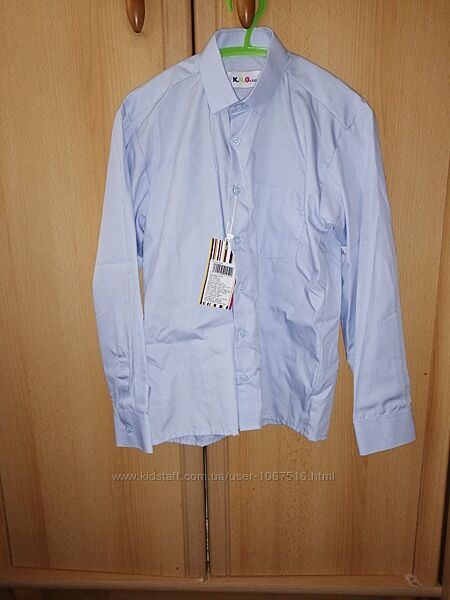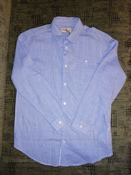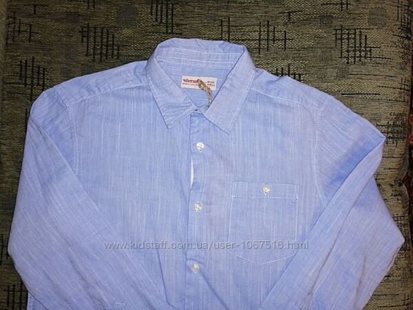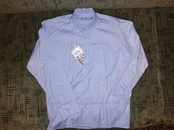 1. Рубашка новая, с бирками, в наличии есть две штуки: размер 122-128 и 128-134. Полномерные. Хлопок 80%.Цвет голубой.Замеры122-128: рукав - 46 см, длина-55, ПОГ-38 см.