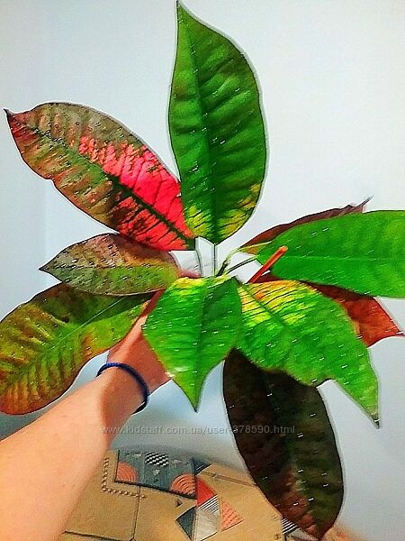 Продам домашнии,коллекционные кротоны -, Голден Глоу,Глориоса,Жёлтая Нервия,Экселенд , Пейдж, Рідді (Codiaeum variegatum Rheedi) ,Codiaeum Exeter (syn. President of Selva) .Андреанум. Манго. Цены разные. Спрашивайте. .Упаковываю надёжно и утепляю!Не один листочек не будет повреждён!!!Сформированные цветы, хорошая корневая и точкой роста. Листья кротона яркие, разнообразной расцветки и формы. Молодые листья, обычно более светлых желто-зеленых оттенков, со временем приобретают более насыщенные зеленый и бордовый цвета, поэтому ваш домашний цветок кротон окрашен, как нарядный осенний лес. Листья кротона яркие, разнообразной расцветки и формы. Цветок кротон – один из самых красивых декоративно-лиственных комнатных растений, который служит прекрасным украшением интерьера и, как правило, не занимает слишком много места. В некоторых странах комнатное растение кротон считается хранителем домашнего очага, защищающим дом от плохой энергетики Цена указана в обьявлении за Codiaeum Exeter (syn. President of Selva)