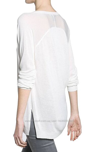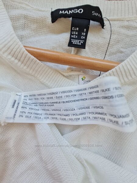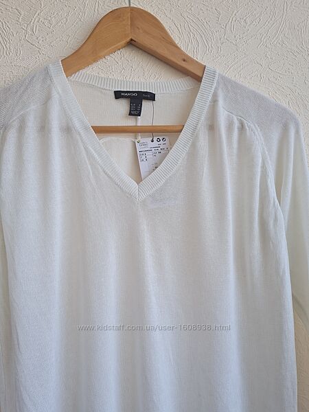 Віскозна кофта mango білого кольору. Є невеликій розріз з однієї сторони Розмір S. Заміри: ПОГ 48 см. рукав від шиї 69 см высота 58 см Склад : 95% viscose 5% silk