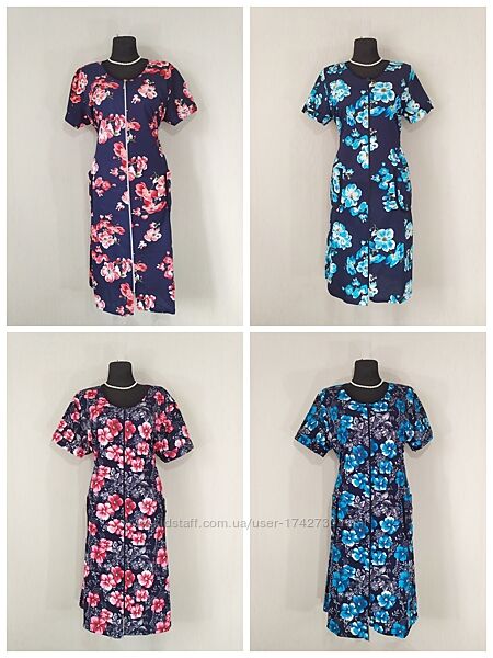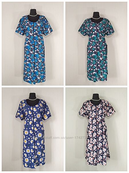 Подробное описание: Женский трикотажный халат на молнии с карманами и поясом. Размер 46-68
