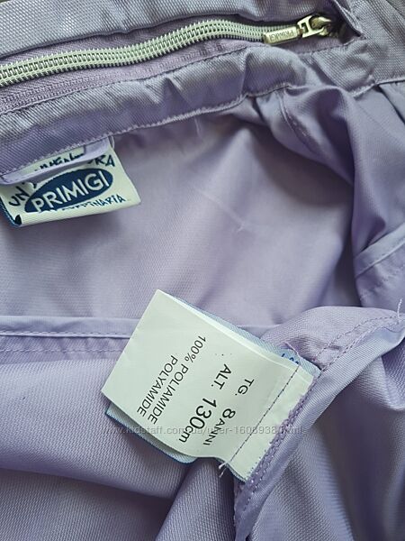 Детская итальянская ветровка нежно фиолетового цвета бренда primigi. Структура шелковая, внутри ткань с пропиткой. Есть капющон, который прячется в воротник, также есть карманы. Размер 8лет, на рост 130 см. Абсолютно новая. Замеры: ПОГ 41 см, Высота 48 см Рукав от плеча 50,5 см
