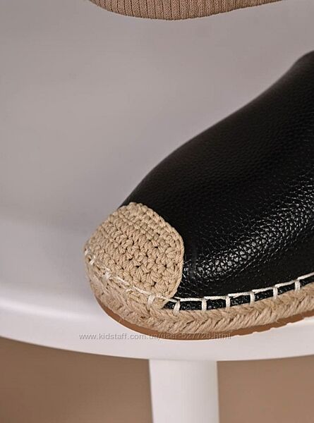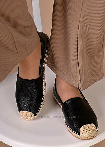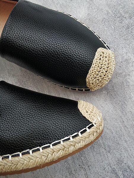 Женские балетки-эспадрильи с джутовой веревочной основой в качестве подошвы и высоким задником, что удобно при ходьбе.Материал: эко-кожа