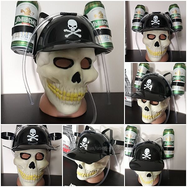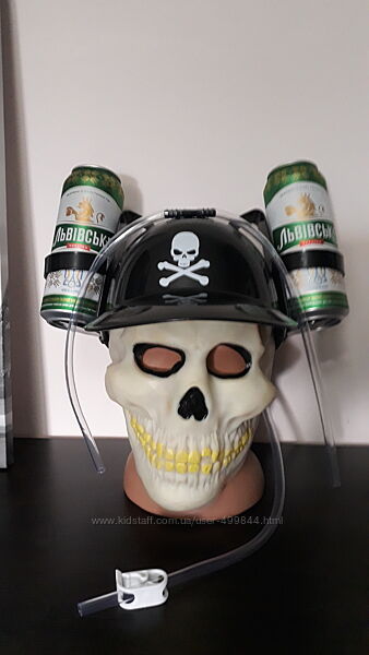 Пивная каска SkullВыполненная в черном цвете и с рисунком черепа белого цвета, каска станет находкой для тех, кто любит смотреть телевизор или до упаду плясать на вечеринке, потягивая при этом любимый спиртной напиток. Чудо-каска оснащена специальным регулятором напора струи. Надежную посадку и фиксацию на голове обеспечивает встроенный внутри обруч как в строительной каске. С ним пивная каска никогда не упадет.