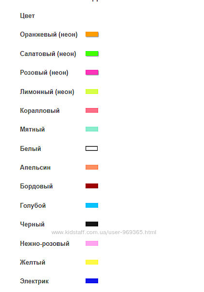 Цвет: Оранжевый (неон), Салатовый (неон), Розовый (неон), Лимонный (неон), Коралловый, Мятный, Белый, Апельсин, Голубой, Черный, Нежно-розовый, Желтый, Электрик