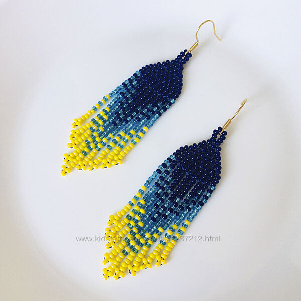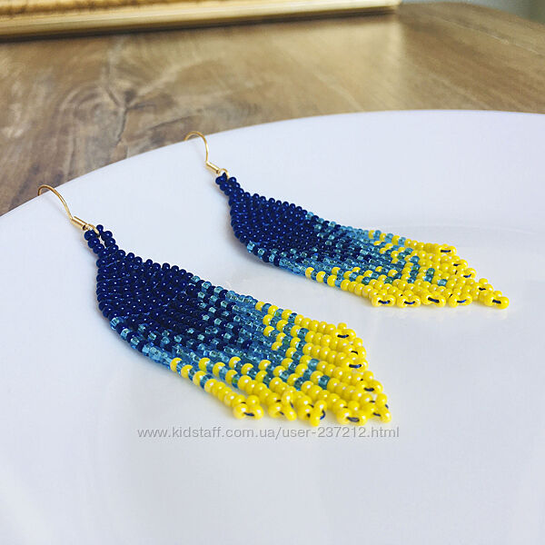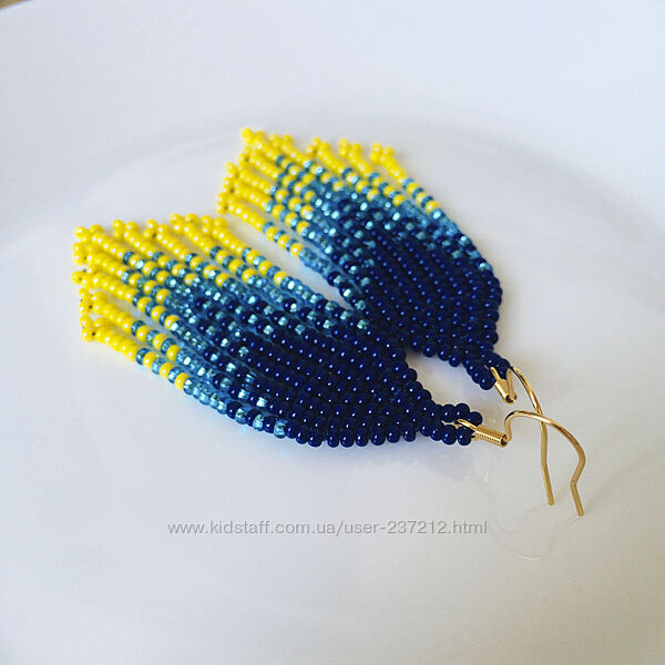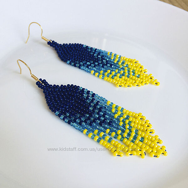 Бисерные серьги в цветах флага Украины, серьги из бисера ручной работы