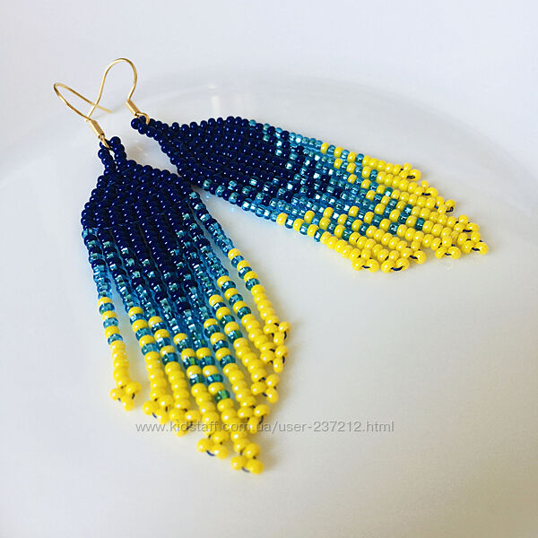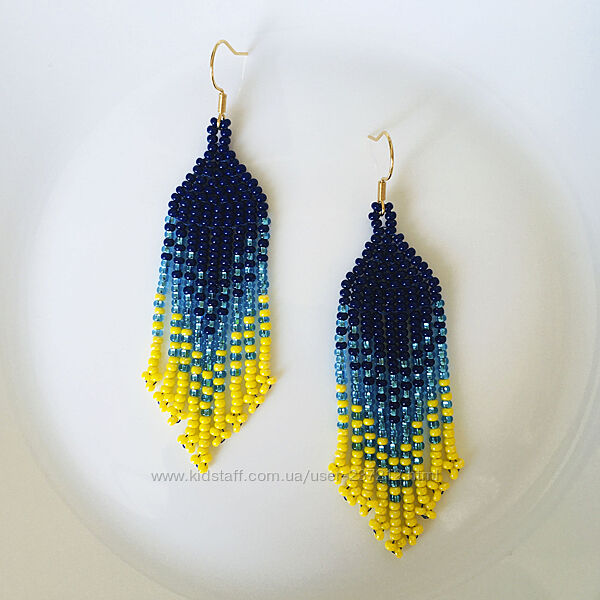 Яркие бисерные серьги с градиентным узором в цветах флага Украины.Швемзы этих сережек изготовлены из медицинской стали 304 марки. Не поддаются коррозии, не боятся воды, не темнеют.
