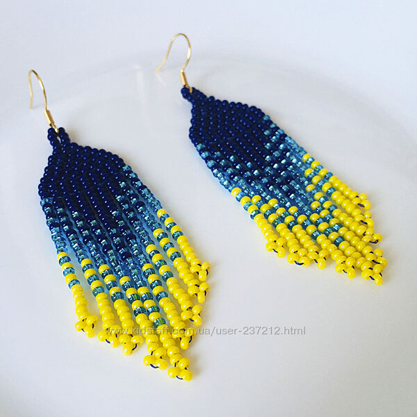Подробное описание: Бисерные серьги в цветах флага Украины, серьги из бисера ручной работы